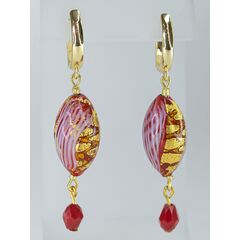 Серьги женские из гипоаллергенного ювелирного сплава желтого цвета. Вставка- муранское стекло, цвет- красный с принтом золотого цвета. Высота серег--5,0см., ширина-2,0. Замок- английский со штифом -1,0см.