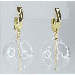 Серьги женские из гипоаллергенного ювелирного сплава желтого цвета. Вставка- муранское прозрачное стекло. Высота серег- 4,0см., ширина-2,0см. Замок-английский со штифом-1,0см.