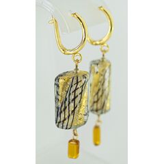 Серьги женские из гипоаллергенного ювелирного сплава желтого цвета. Вставка- Муранское стекло, цвет-красный, желтый, черный. Высота серег- 4,0см, ширина-2,0см. Замок- английский (штифт-1,0см).