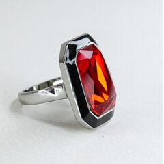 Кольцо женское из гипоаллергенного ювелирного сплава серого цвета. Вставка- кварц красного цвета. Покрытие эмалью, цвет- черный. Высота кольца-2,5см, ширина-2,0см. Размер-18,0.