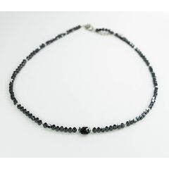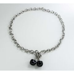 Колье-чокер из гипоаллергенного ювелирного сплава темно-серого цвета. Состоит из звеньев, в центре-бусина черного цвета из ювелирного стекла. Длина колье- 40,0+5см. Замок у колье- карабин.