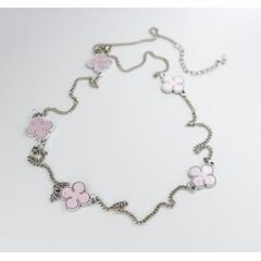 Колье из гипоаллергенного ювелирного сплава серого цвета и вставками из перламутра розового цвета, ( размер вставок-1,5см). Длина колье -70,0см. Замок- карабин.