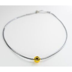 Колье-чокер из гипоаллергенного ювелирного сплава серого цвета.Состоит из звеньев, в центре- шарик желтого цвета из ювелирного сплава. Длина колье- 40,0+5см. Замок у колье-шпрингельный.