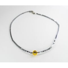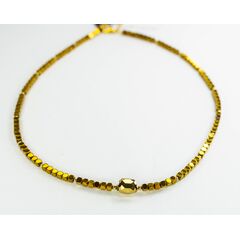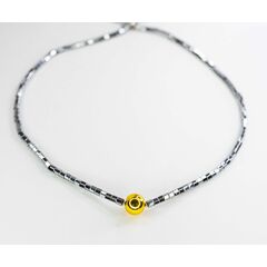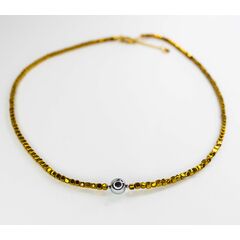 Колье-чокер из бусин гематита желтого цвета и гипоаллергенного ювелирного сплава серого цвета. Длина колье-40,0см с удлиняющей цепочкой. Замок- карабин.