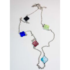 Колье из гипоаллергенного ювелирного сплава серого цвета и вставками из перламутра, цвет-красный, синий, зеленый, черный ( размер вставок-1,5см). Длина колье -70,0см. Замок- карабин.