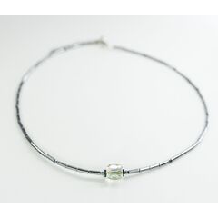 Колье-чокер из гипоаллергенного ювелирного сплава серого цвета.Состоит из звеньев, в центре- кристалл в виде бусины цвета мистик из ювелирного сплава. Длина колье- 40,0+5см. Замок у колье-карабин.