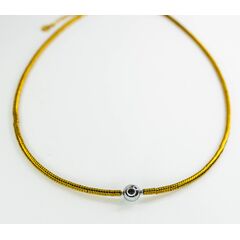 Колье-чокер из гипоаллергенного ювелирного сплава желтого цвета.Состоит из звеньев, в центре- бусина желтого цвета из ювелирного сплава. Длина колье- 40,0+5см. Замок у колье- карабин.