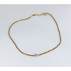 Колье-чокер из гипоаллергенного ювелирного сплава желтого цвета.Состоит из звеньев, в центре- шарик серого цвета из ювелирного сплава. Длина колье- 40,0+5см. Замок у колье-шпрингельный.