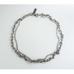 Колье из гипоаллергенного ювелирного сплава серого цвета. Состоит из цепи якорного плетения и цепочки со вставками из ювелирного стекла белого цвета. Длина -40,0см, замок - шпрингель.