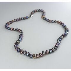 Колье из гипоаллергенного ювелирного сплава серого цвета (цепь,плетение-бельцер) и иск. жемчуга фиолетового цвета. Длина -50,0см, замок - винт.