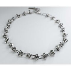 Колье из гипоаллергенного ювелирного сплава серого цвета.Состоит из звеньев-узелков, длина колье-45см+7см. Замок к колье-шпрингельный.