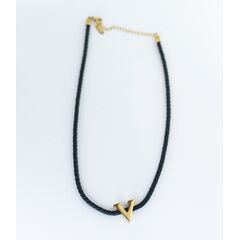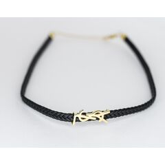 Колье из кожаного шнура черного цвета с подвеской из высококачественного гипоаллергенного ювелирного сплава желтого цвета. Длина колье- 40,0см с удлиняющей цепочкой. Замок- карабин.