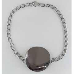 Колье женское (цепь с элементом в виде круглой пластины, диаметром-5,0см)) из гипоаллергенного ювелирного сплава серого цвета. Без вставок. Длина колье-50,0см с удлинением. Замок- карабин.