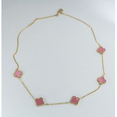Колье женское (цепь) из высококачественного ювелирного сплава желтого цвета. Колье состоит из цепи с чередующимися фигурками ,покрытыми эмалью розового цвета.,Длина колье-45,0см, замок- карабин с удлиняющей цепочкой.