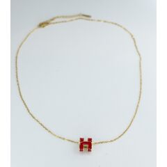 Колье женское (цепь с подвеской) из высококачественного ювелирного сплава желтого цвета. Без вставок. Подвеска покрыта эмалью оранжевого цвета. Высота и ширина подвески-1,0см. Длина колье-40,0см, замок- карабин с удлиняющей цепочкой.