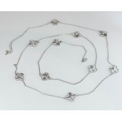 Колье женское (цепь с чередующимися фигурками в виде четырехлистника) из высококачественного ювелирного сплава серого цвета. Длина колье-100,0см, замок- карабин с удлиняющей цепочкой.