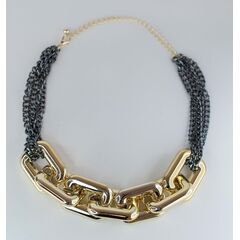 Колье-чокер из гипоаллергенного ювелирного сплава желтого цвета.Состоит из звеньев, в центре- бусина серого цвета из ювелирного сплава. Длина колье- 40,0+5см. Замок у колье- карабин.