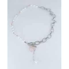 Колье из гипоаллергенного ювелирного сплава серого цвета и вставками из перламутра розового цвета, ( размер вставок-1,5см). Длина колье -70,0см. Замок- карабин.