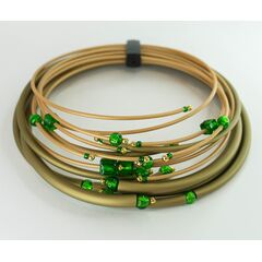 Колье женское безразмерное многослойное из итальянского каучука, цвет- желтый и олива. Вставка- Муранское стекло зеленого цвета. Без замка.