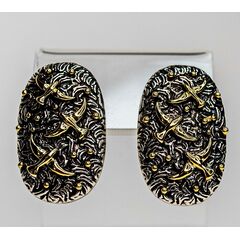 Серьги из гипоаллергенного ювелирного сплава желтого и серого цвета. Без вставок. Итальянский замок (швенза-1,2см и застежка-клипса). Высота серег-3см, ширина-2см.