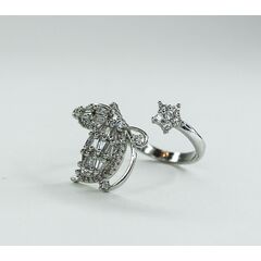 Кольцо женское из гипоаллергенного ювелирного сплава серого цвета. Вставка- ювелирное стекло белого цвета. Высота кольца-1,8см, ширина-2,0. Размер-18,0. Кольцо разъемное, безразмерное.