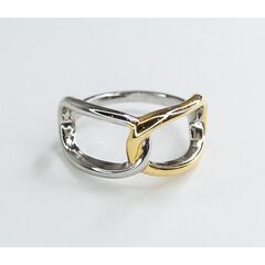 Кольцо женское из гипоаллергенного ювелирного сплава серого и желтого цвета. Без вставок. Высота кольца-0,8см, ширина-2см. Размер -17,0.