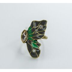 Кольцо из гипоаллергенного ювелирного сплава, цвет-желтый. Покрытие- эмаль, цвет- серый, зеленый. Кольцо (крыло бабочки), высота-3,5см, ширина-2см. Размер кольца-17,0.