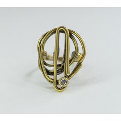 Подвеска из гипоаллергенного ювелирного сплава черного и желтого цвета. Вставка - ювелирное стекло белого цвета. Высота кольца-3см, ширина-2,5см. размер-19,0.