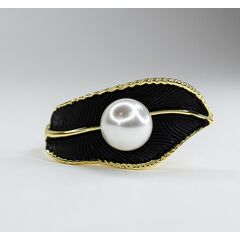 Кольцо из гипоаллергенного ювелирного сплава черного и желтого цвета.Вставка- иск жемчуг белого цвета,диаметр камня-1,0см. Размер кольца-17,0.